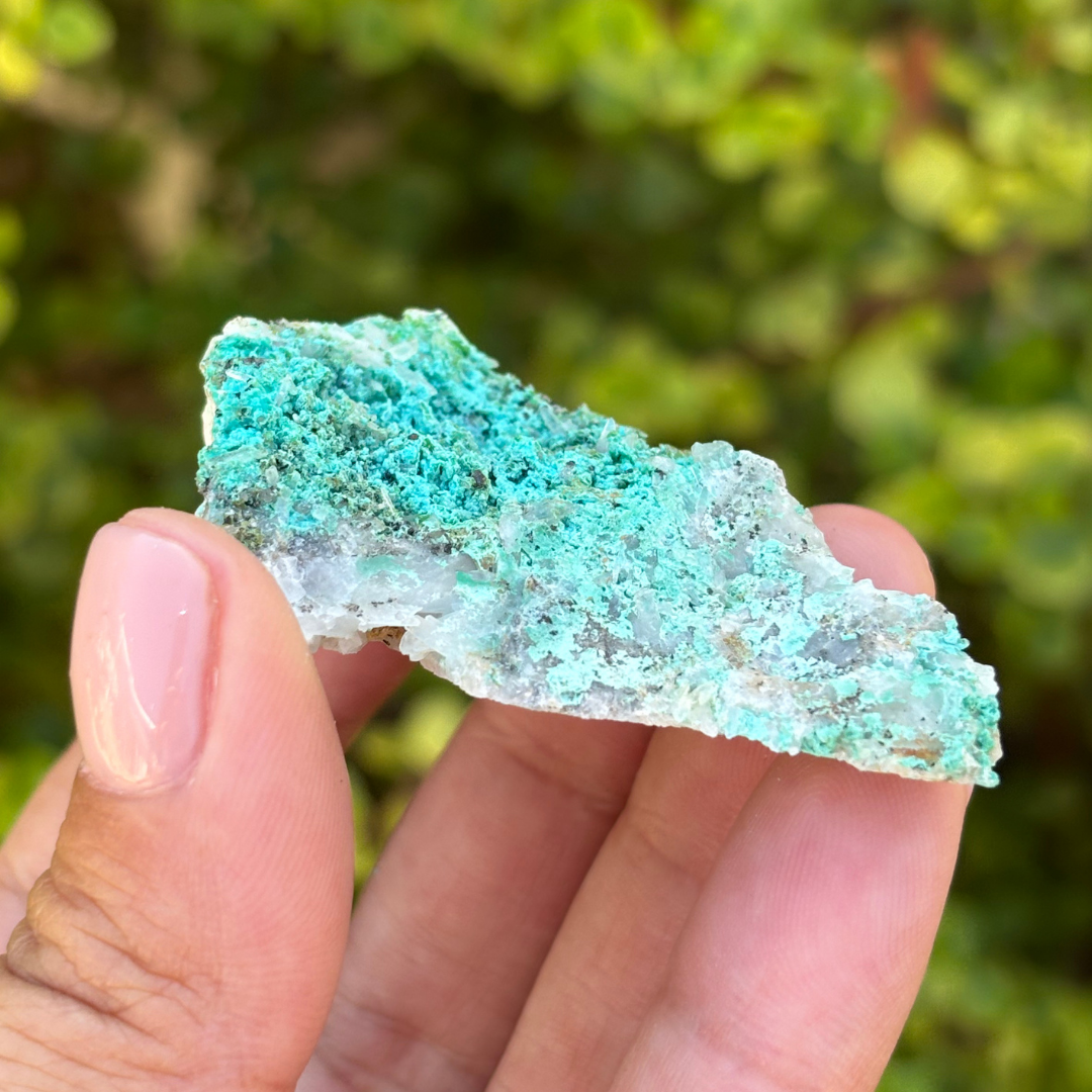 Aurichalcite resonates with the heart and throat chakras, fostering emotional healing and the expression of one's deepest truths. This mineral encourages compassion and understanding, promoting harmony in interpersonal relationships. Aurichalcite is also associated with the release of stress and anxiety, aiding in the pursuit of inner peace and mental clarity. Spiritual seekers value this stone for its ability to enhance intuition and connect the physical realm with higher consciousness, facilitating a greater sense of spiritual awareness and growth. The copper within this mineral allows one to channel abundant energies from within and ground these vibrations to the physical world around them. This can be very powerful for people who speak their truths during meditations and allow their affirmations to be vocal and physical, instead of within and psychological.