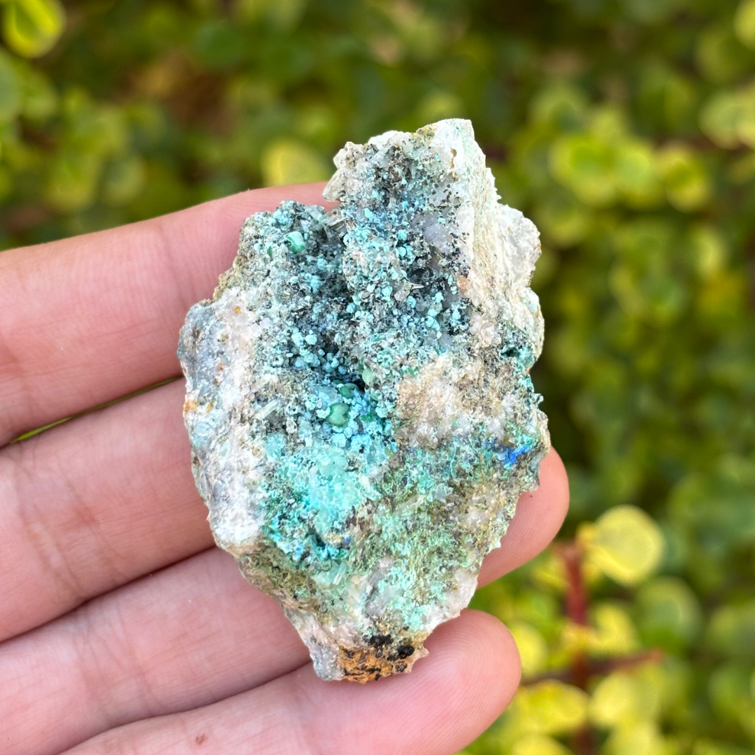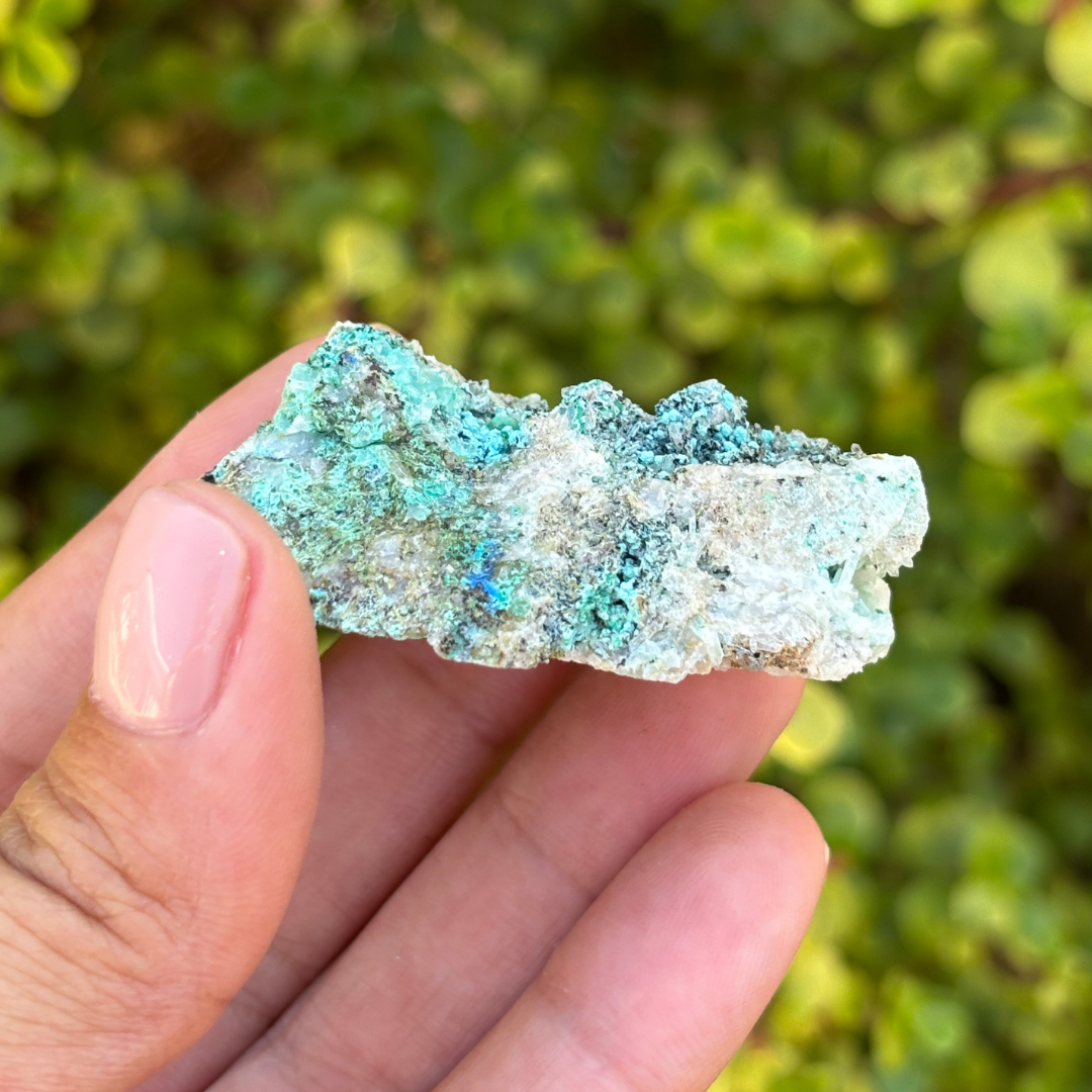 Aurichalcite resonates with the heart and throat chakras, fostering emotional healing and the expression of one's deepest truths. This mineral encourages compassion and understanding, promoting harmony in interpersonal relationships. Aurichalcite is also associated with the release of stress and anxiety, aiding in the pursuit of inner peace and mental clarity. Spiritual seekers value this stone for its ability to enhance intuition and connect the physical realm with higher consciousness, facilitating a greater sense of spiritual awareness and growth. The copper within this mineral allows one to channel abundant energies from within and ground these vibrations to the physical world around them. This can be very powerful for people who speak their truths during meditations and allow their affirmations to be vocal and physical, instead of within and psychological.