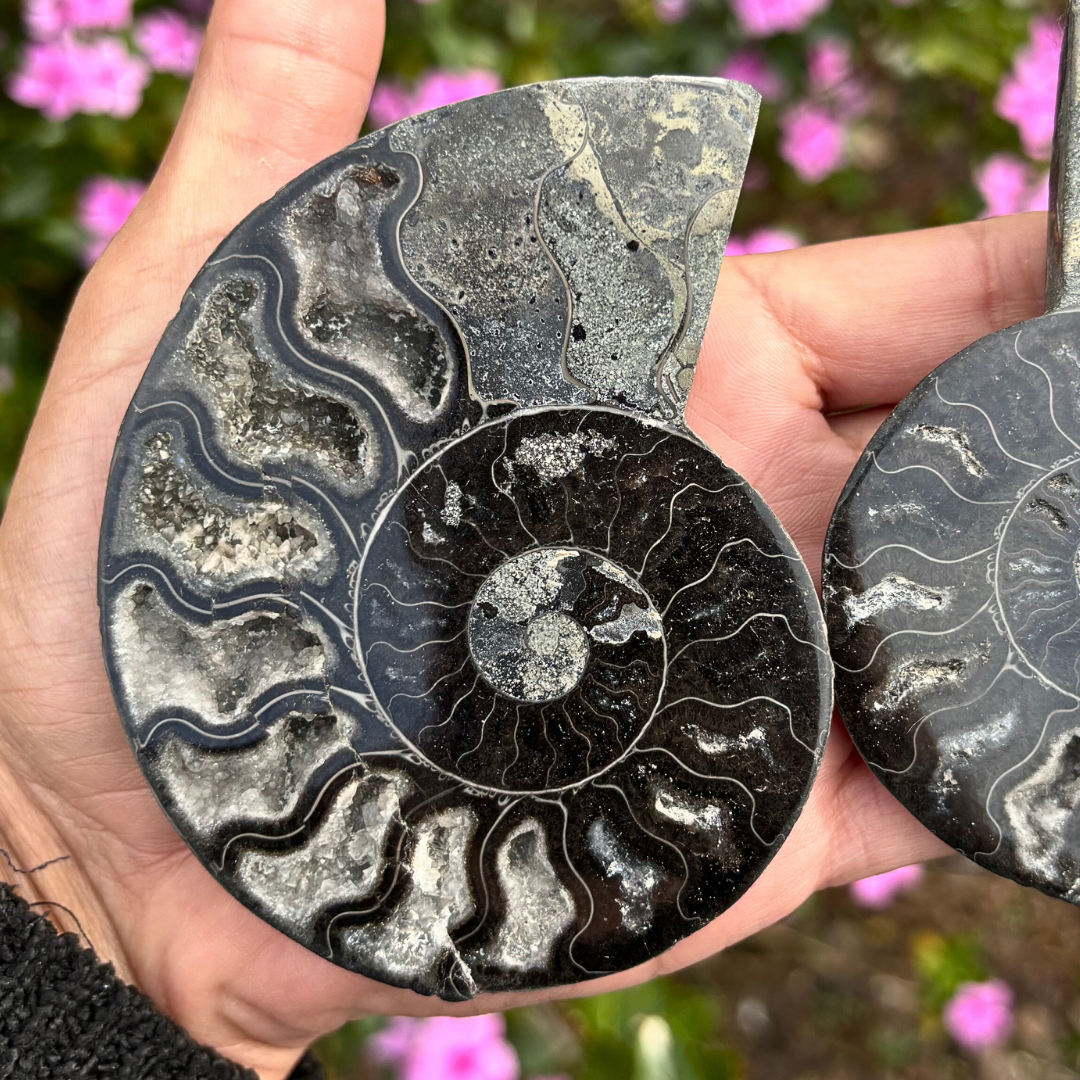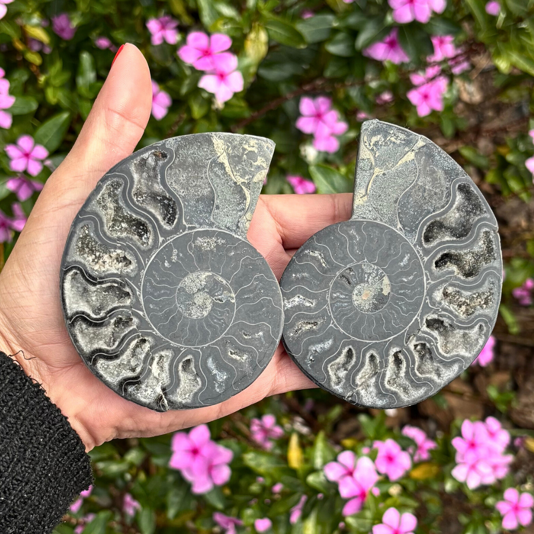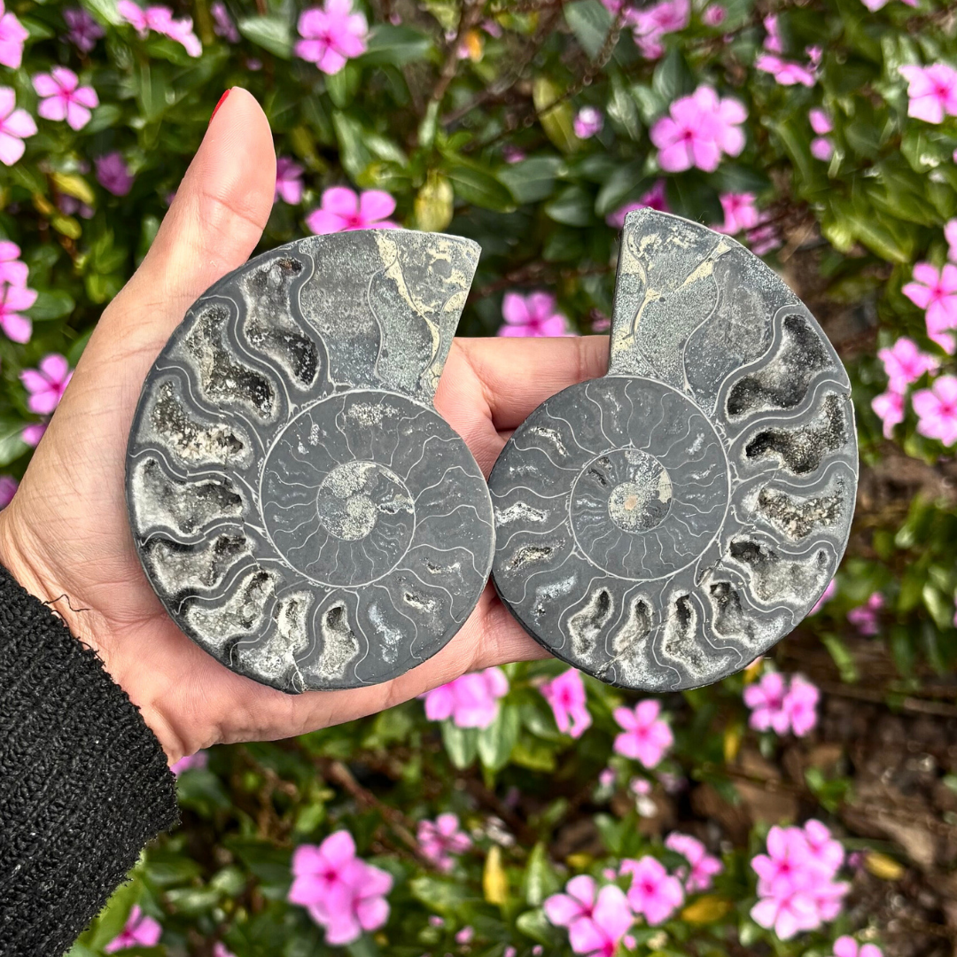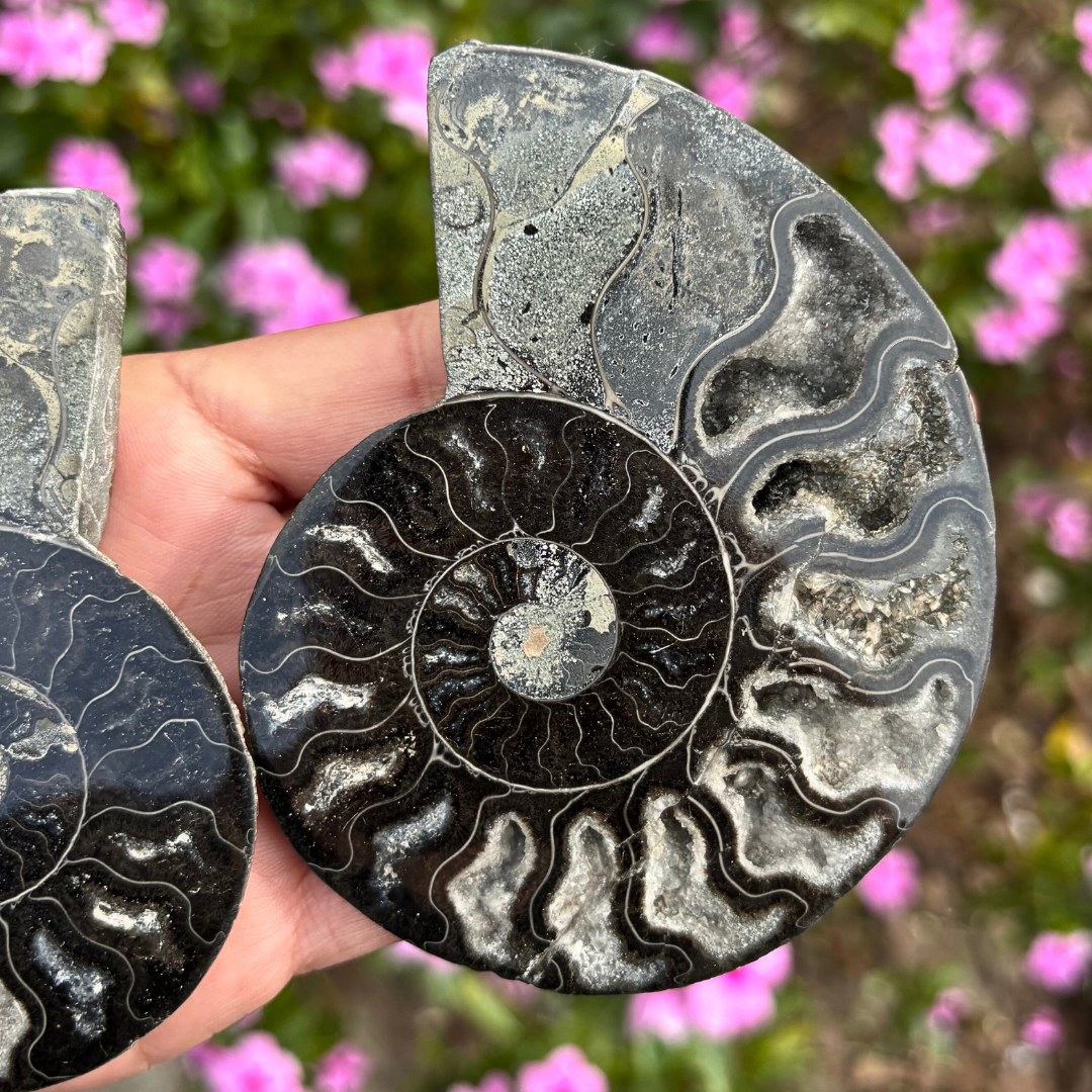 - AA Grade Black Ammonite Fossil Split Pair - Rare
