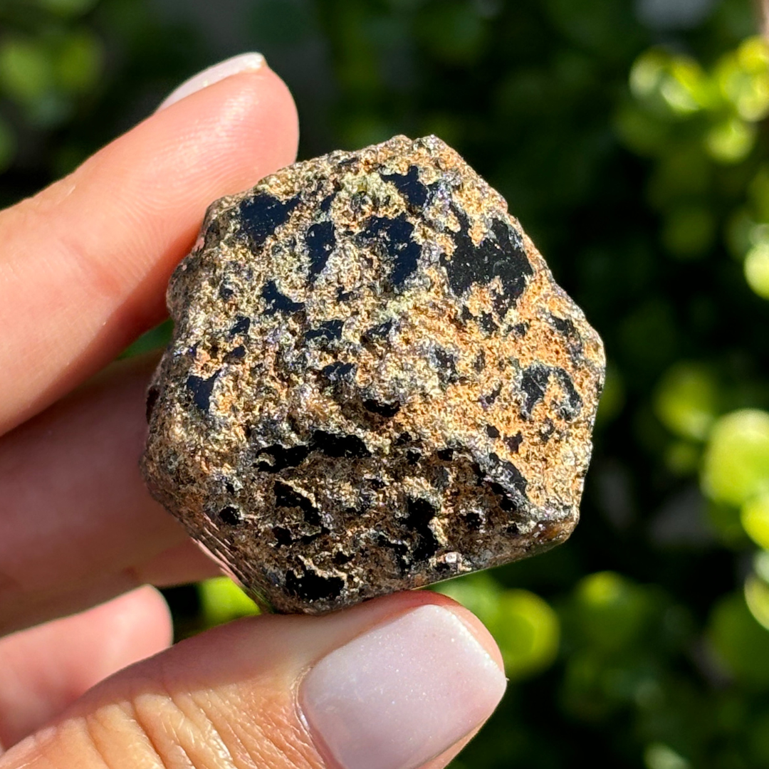 Black Garnet, is a powerful stone associated with the Earth Star and Root chakras. It is a deeply grounding and protective stone. It has a stronger potency than black tourmaline in terms of psychic shielding. Black Garnet is excellent for shadow work, as it filters out unwanted energies from your energy field and pre-empts any psychic challenges you may face. Overall, Black Garnet is a powerful stone that helps you stay grounded and protected during times of spiritual growth and transformation.