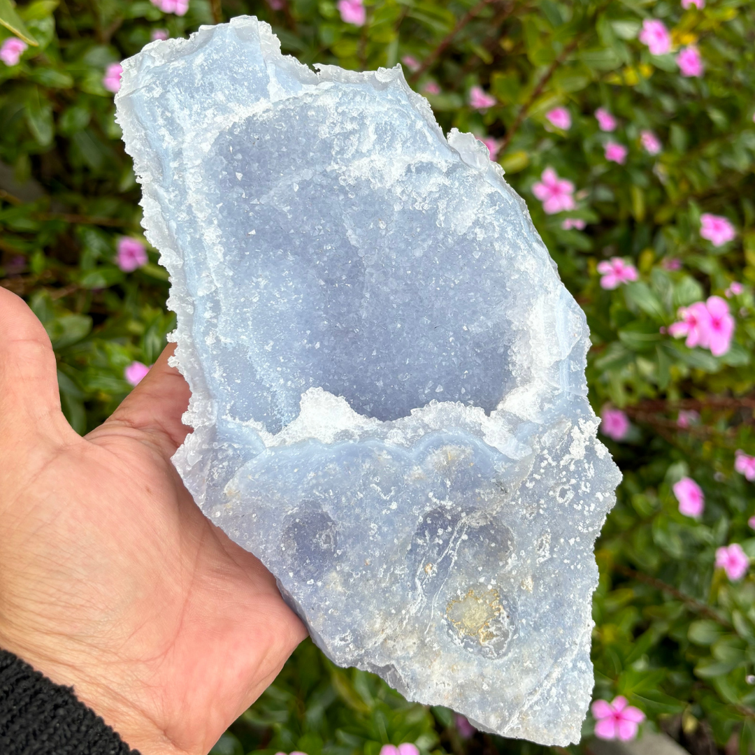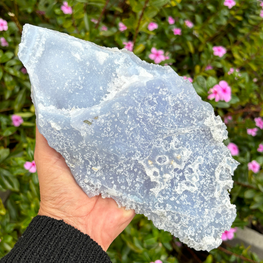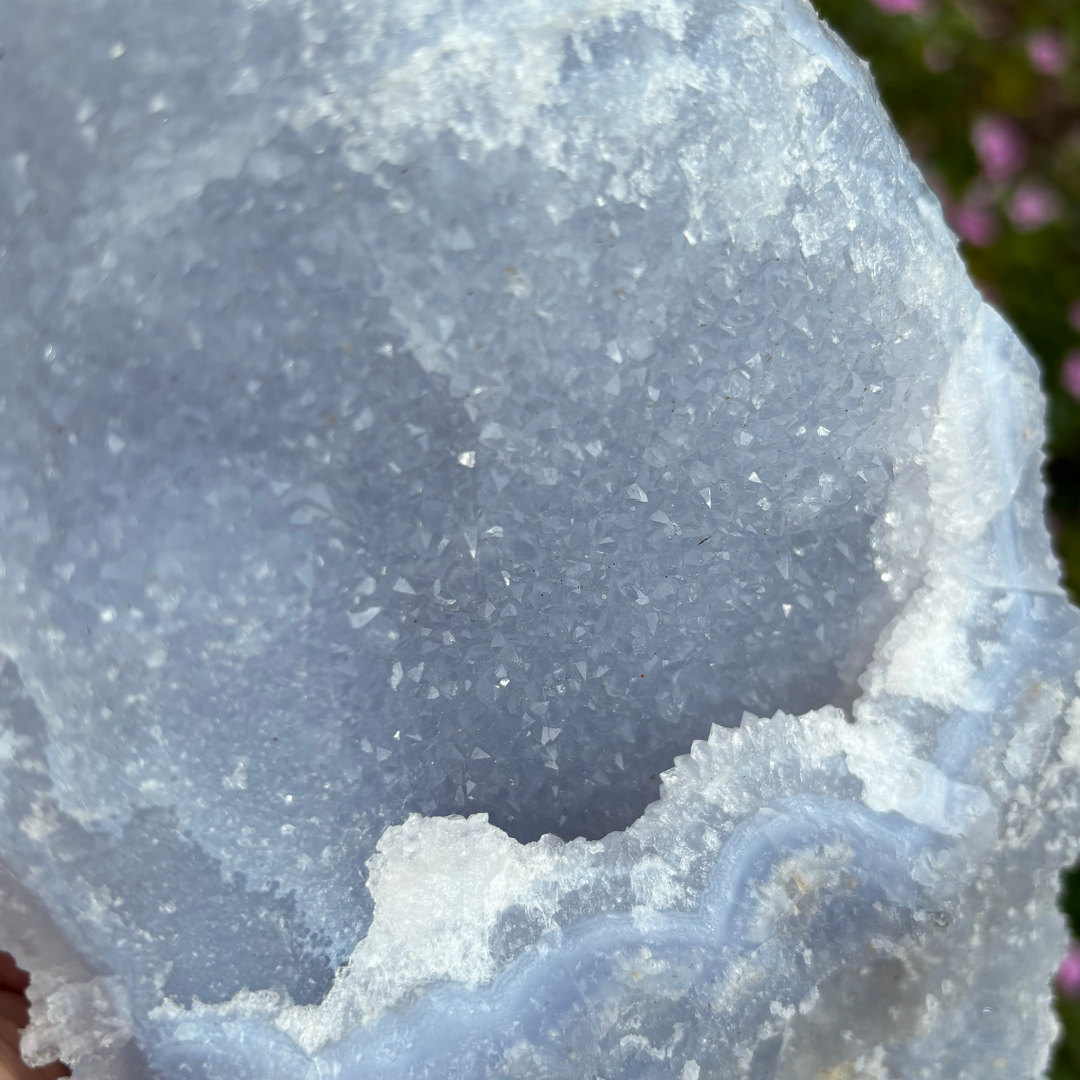 Blue Lace Agate teaches us that our words create our reality and can be a reflection of our highest self. It is a soothing, gentle stone that can help facilitate communication with guides in meditation especially when seeking specific information and guidance. It can help you to understand the importance of speaking one's truth, knowledge, understanding and wisdom. It can also be used on the third eye to to soothe an overactive mind.