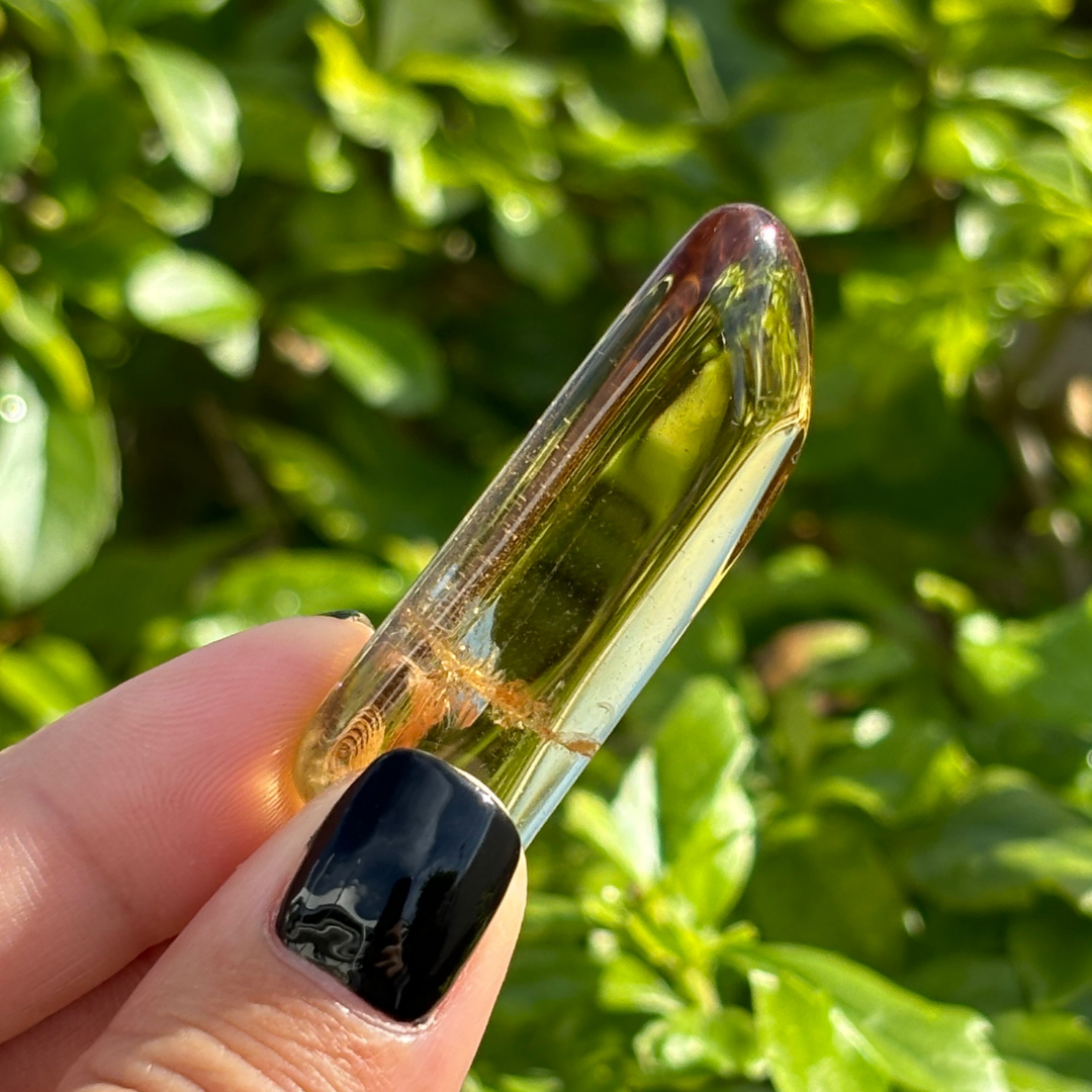 With its pure yellow energy, Citrine encourages fullness of life, fresh beginnings and new pursuits. It opens the higher mind to accept joy in one's life, releasing anger and negative feelings, deep-seated fears and destructive tendencies. Citrine reduces the sensitivity to criticism and inspires creativity and self-expression.