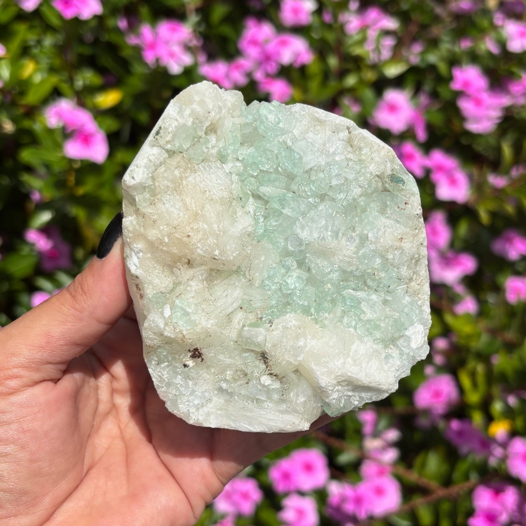 Green Apophyllite activates the heart chakra and provides energy and forthrightness in decisions regarding the heart. Green Apophyllite absorbs and transmits universal energy and stimulating feelings of gratitude and joy.