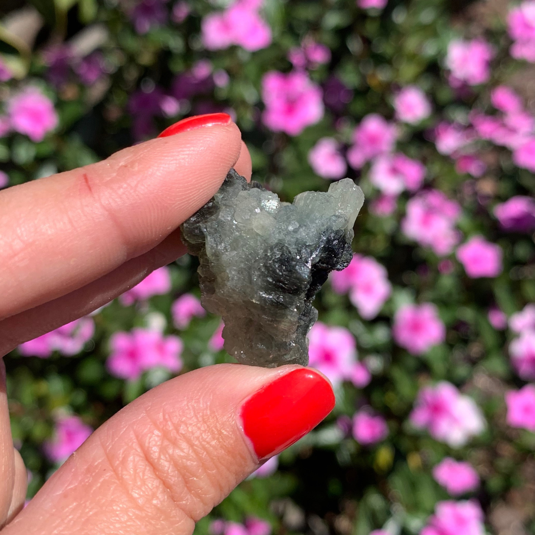 Epidote is a stone that increases whatever it touches. Prehnite boosts prophetic abilities, enhances visualization, lucid dreaming, and spiritual knowledge. It aids in connecting us to higher realms, including our higher selves, as well as spiritual, and extraterrestrial beings. The addition of Epidote to the Prehnite further increases perception and interaction with spiritual beings. This makes Prehnite with Epidote an excellent stone to use when working with spiritual tools.