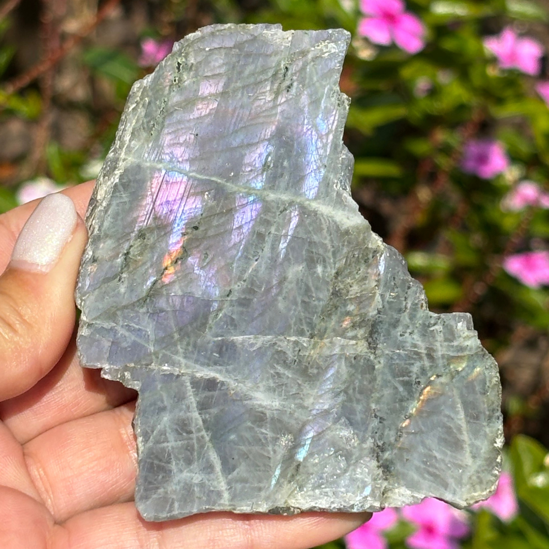 - Labradorite Half Polished Specimen (Purple, Pink with a little Orange & Blue)