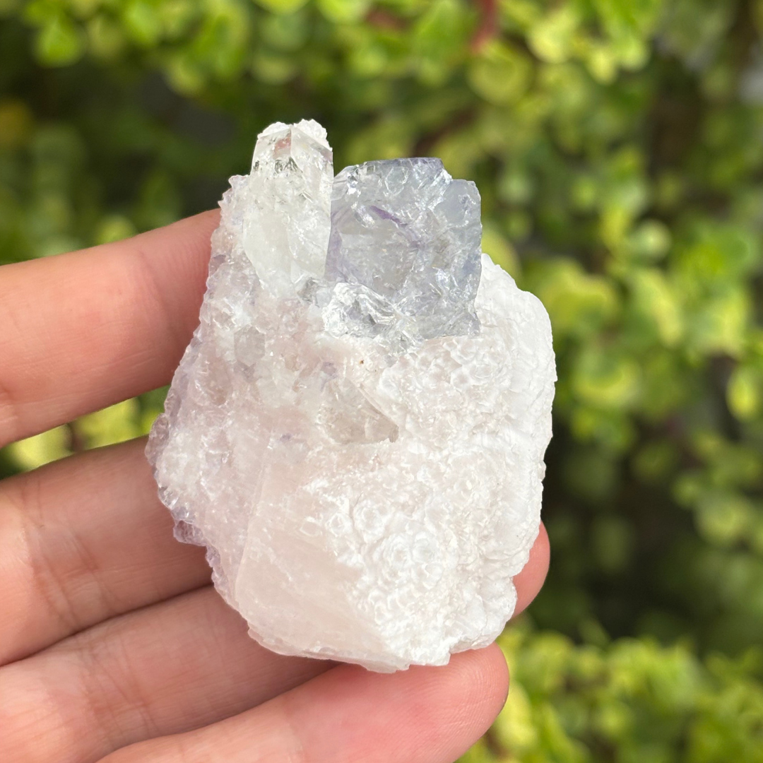 Purple Blue Fluorite with Calcite & Quartz Specimen