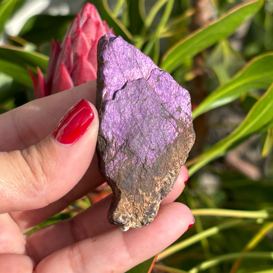 Purpurite resonates with the Violet Ray stimulating the Crown Chakra and increasing spiritual aspirations. Purpurite is a powerful ascension tool that helps attune one to higher energies, as well as open up and connect the third eye and crown chakra. Working with this mineral will help raise ones intuition levels and consciousness, as well as assisting one in the understanding of this new found powerstone. Purpurite will help one adjust and become more comfortable with the energy being channeled through your mind and into your third eye. Using and wearing this stone frequently can cause one to have inner visions about their current life path.