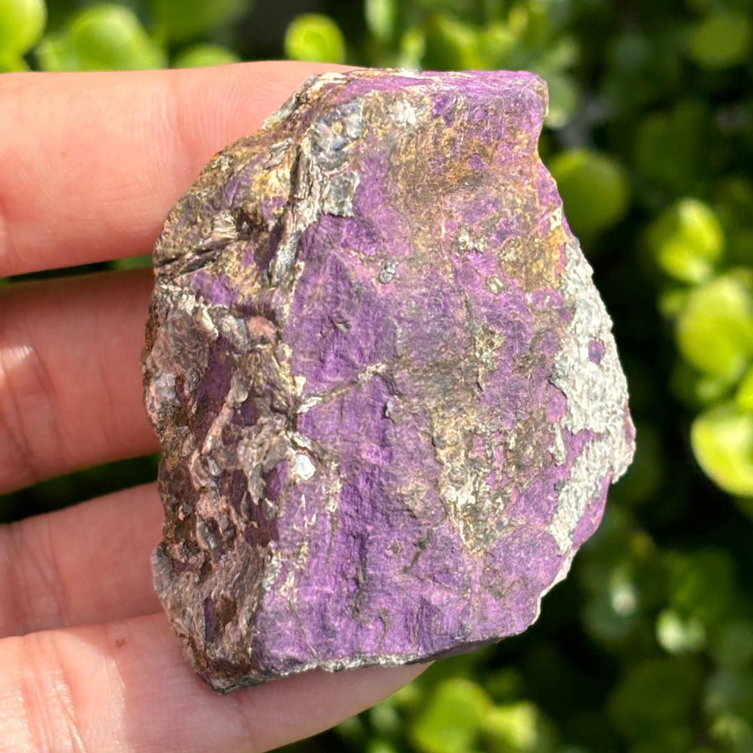 Purpurite resonates with the Violet Ray stimulating the Crown Chakra and increasing spiritual aspirations. Purpurite is a powerful ascension tool that helps attune one to higher energies, as well as open up and connect the third eye and crown chakra. Working with this mineral will help raise ones intuition levels and consciousness, as well as assisting one in the understanding of this new found powerstone. Purpurite will help one adjust and become more comfortable with the energy being channeled through your mind and into your third eye. Using and wearing this stone frequently can cause one to have inner visions about their current life path.