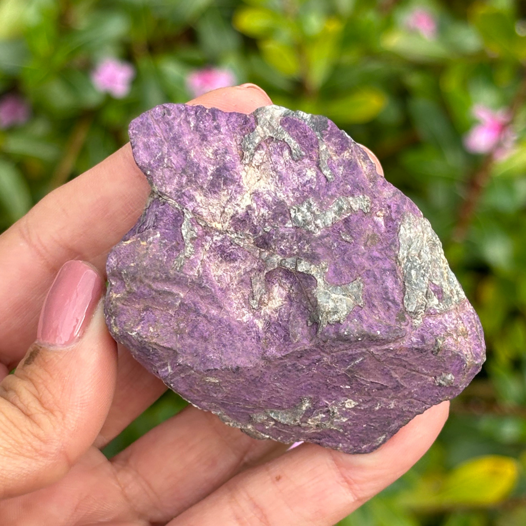 Purpurite resonates with the Violet Ray stimulating the Crown Chakra and increasing spiritual aspirations. Purpurite is a powerful ascension tool that helps attune one to higher energies, as well as open up and connect the third eye and crown chakra. Working with this mineral will help raise ones intuition levels and consciousness, as well as assisting one in the understanding of this new found powerstone. Purpurite will help one adjust and become more comfortable with the energy being channeled through your mind and into your third eye. Using and wearing this stone frequently can cause one to have inner visions about their current life path.
