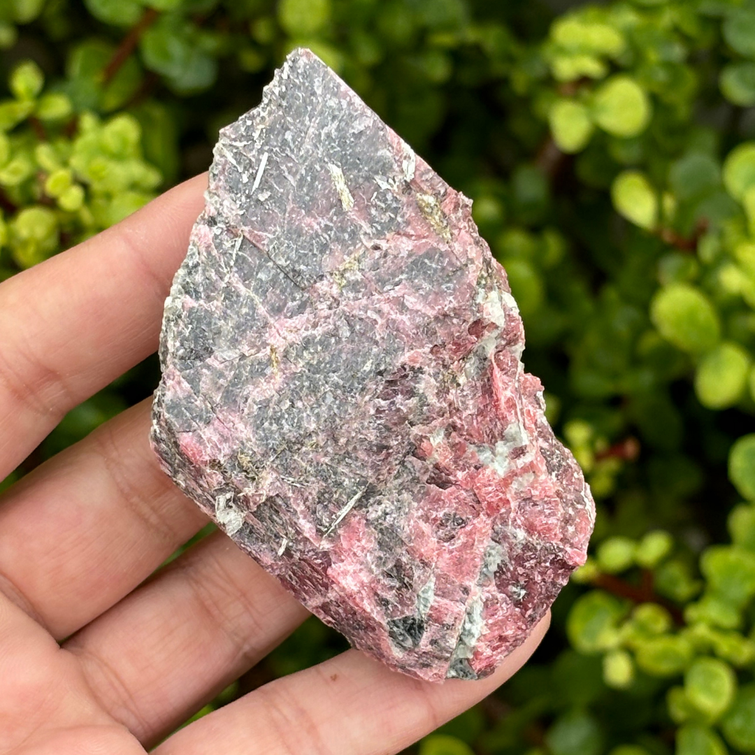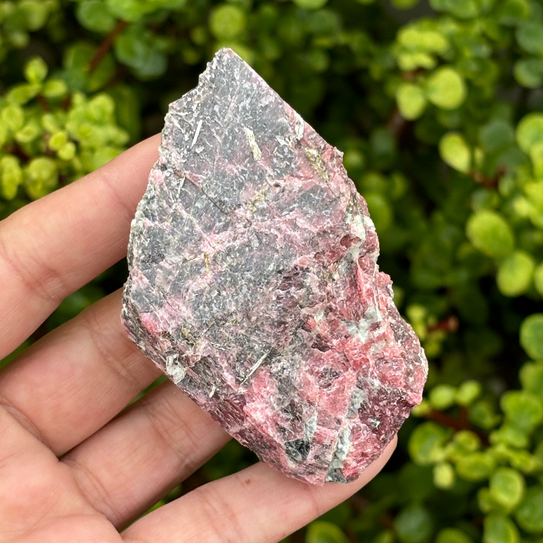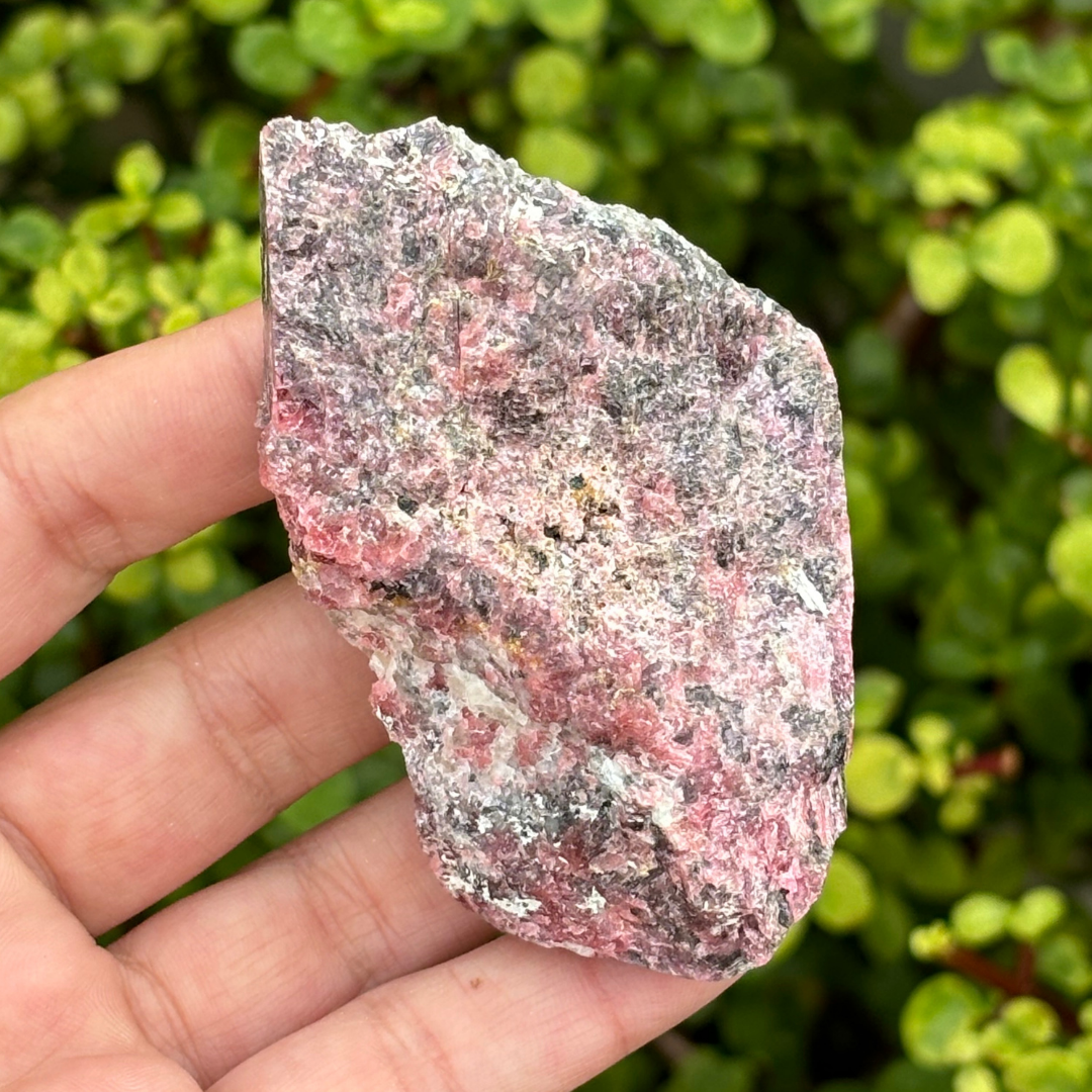 Rhodonite is a stone of self-worth.. It aids one in feeling secure about one's purpose. It can help one find a stronger sense of self and a clearer call towards one's spiritual path.