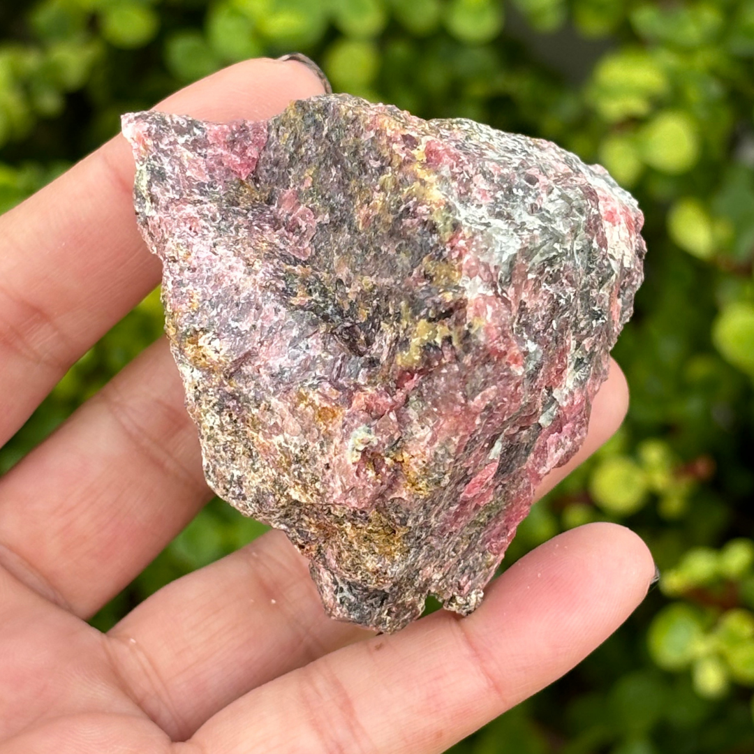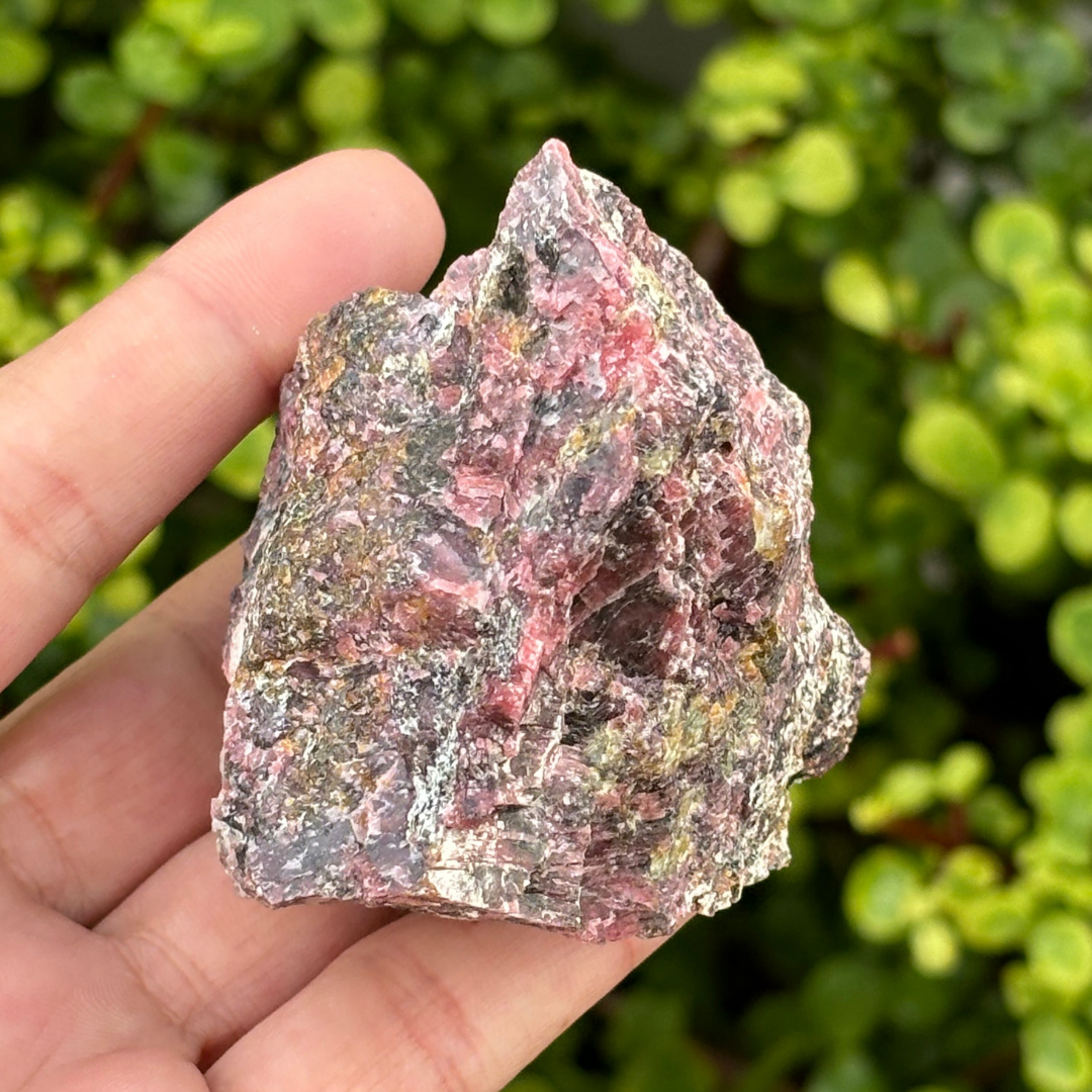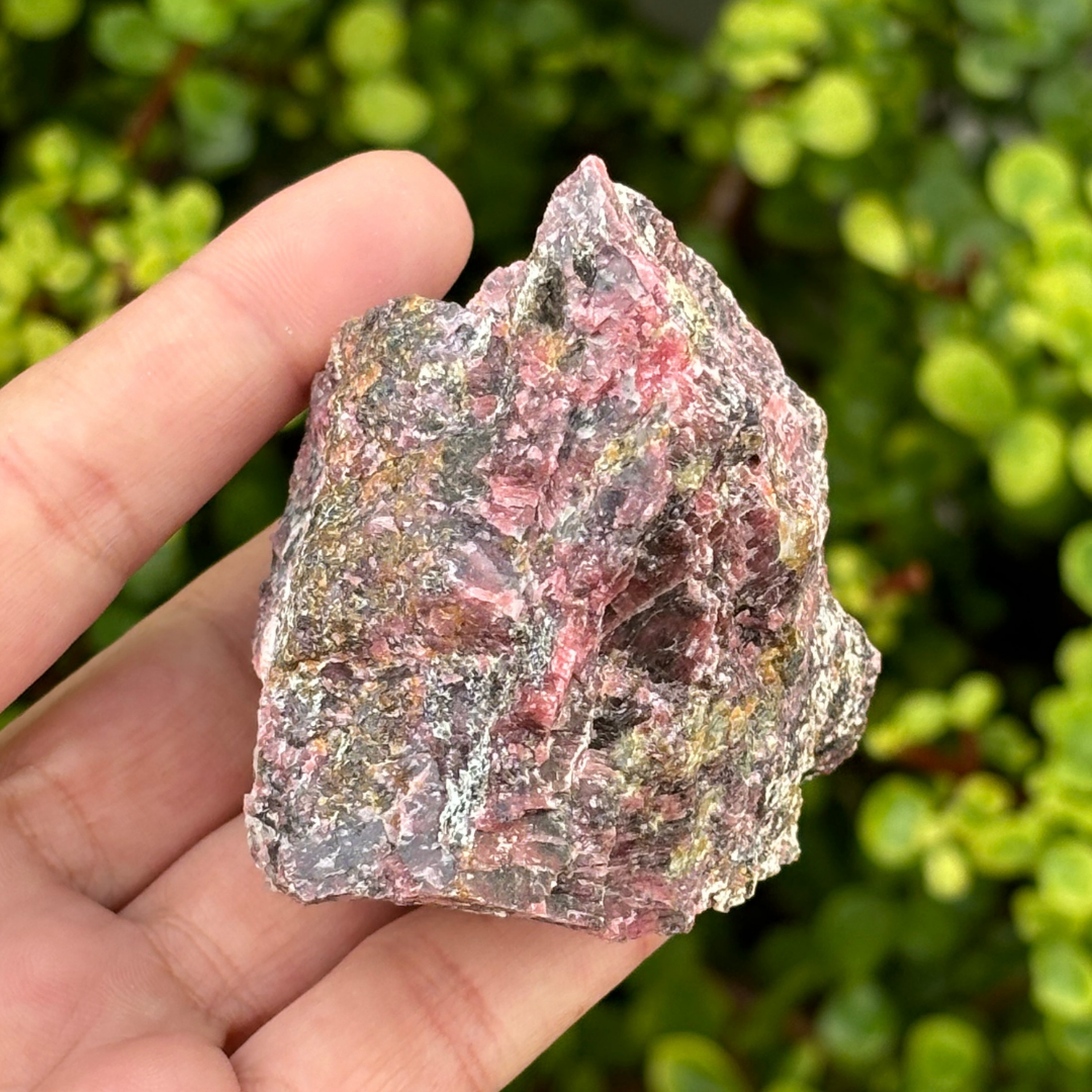 Rhodonite is a stone of self-worth.. It aids one in feeling secure about one's purpose. It can help one find a stronger sense of self and a clearer call towards one's spiritual path.