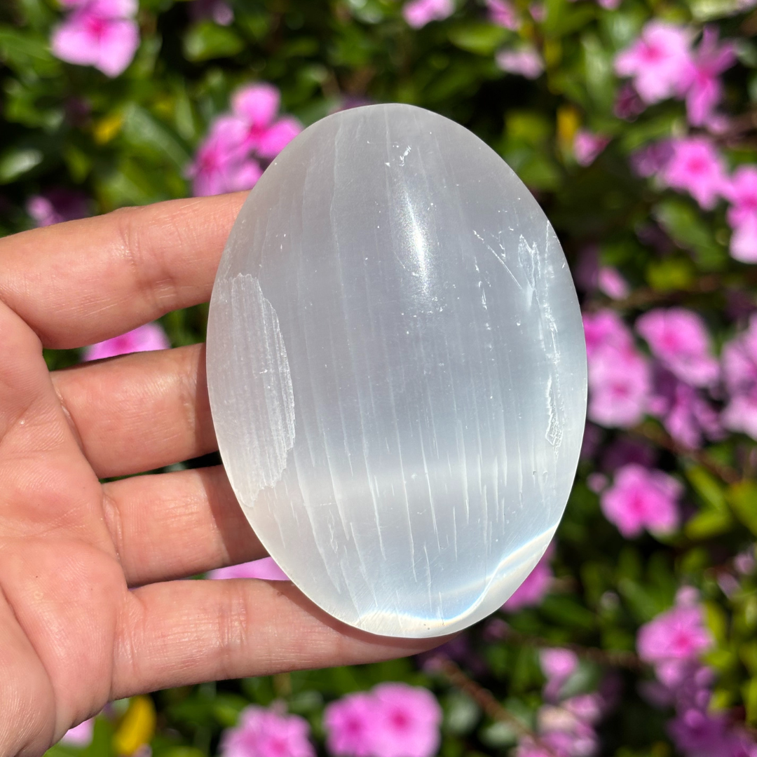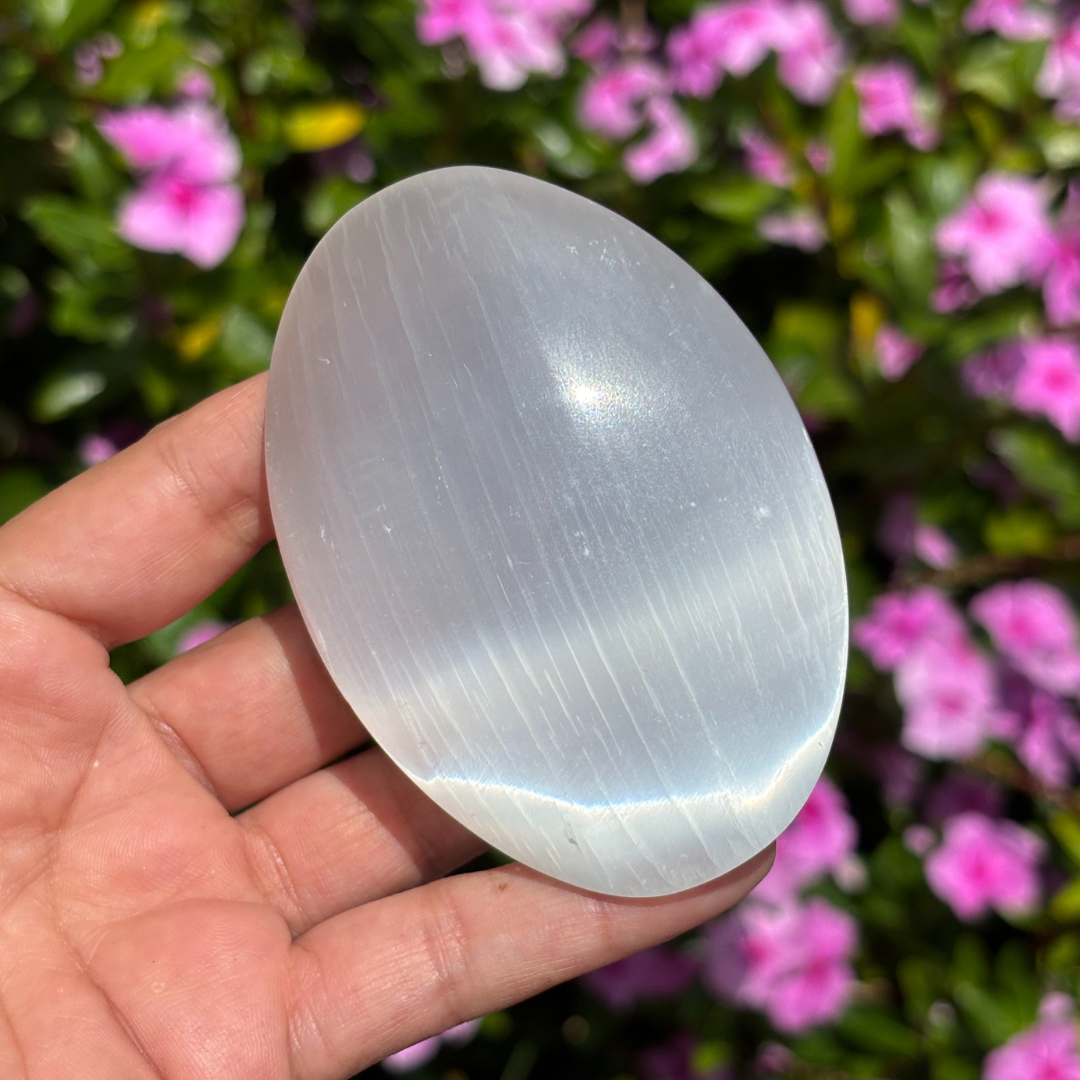 - Selenite Palm Stone