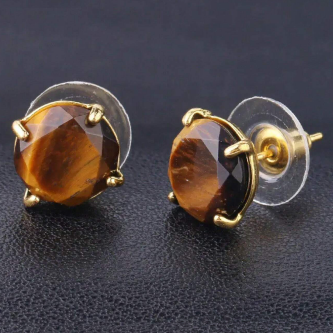 - 1 x Tigers Eye Round Stud Earrings (Claw Setting)