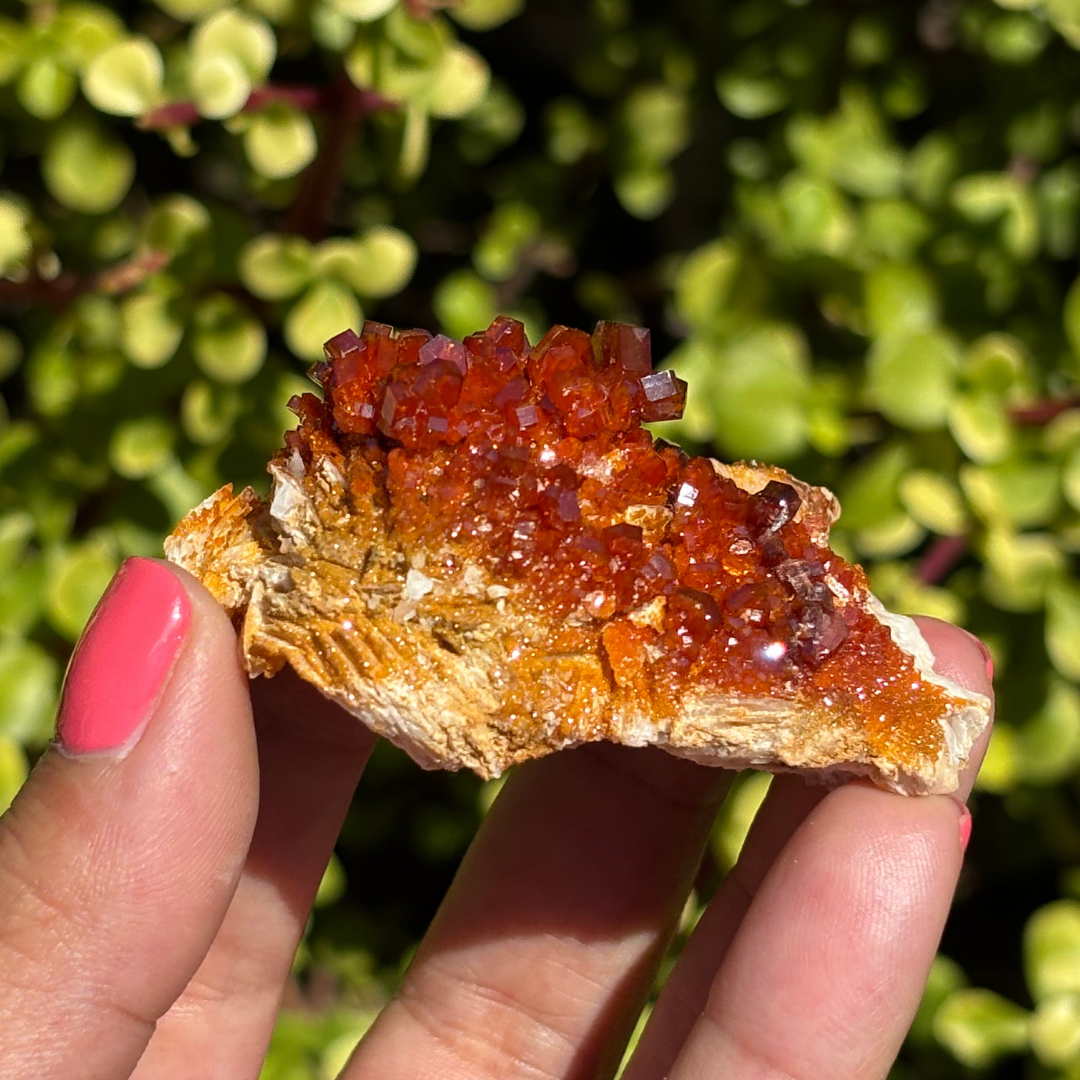 Vanadinite is a powerful Fire element stone that promotes action and production. It stimulates the physical body and brings a flush of pure creative energy into one's aura.